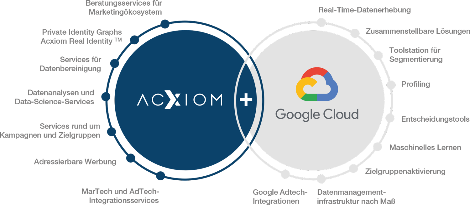Acxelerate ist Ihr All-in-one-Toolkit, das Sie bei der Nutzung von Google Cloud-Plattform umfassend unterstützt. Ziel ist dabei die Bereitstellung eines vernetzten Datenplattform-Ökosystems, in dem Kundendaten aus dem gesamten Unternehmen zur Kundenanalyse zusammengeführt werden, um das Timing und Targeting der Marketingkommunikationen modellieren und optimieren zu können.