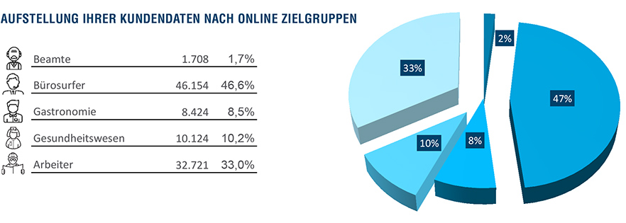 Die Datenbasis für Adressdatenselektionen, B2B Datenabgleiche und Analysen ist die Acxiom InfoBase™ Business – eine der größten flächendeckenden B2B Datenbanken in Deutschland mit über 4 Mio. aktiven Businessadressen aus öffentlichen Quellen, Partnerinformationen und recherchierten Daten. Der Adressabgleich gegen die Acxiom InfoBase™ Business ermöglicht die Prüfung und Bestätigung von Firmenadressen über die Acxiom zur Verfügung stehenden Referenzdaten.