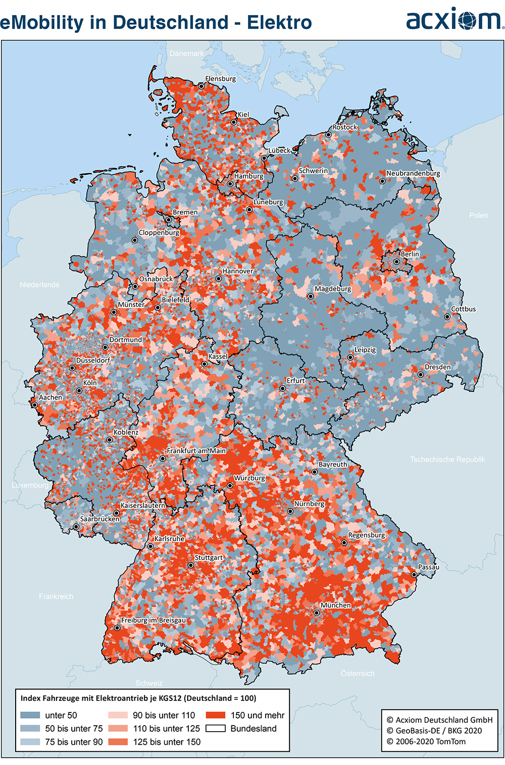 „Die Zukunft des Automarktes wird von Elektro- und Hybridautos geprägt sein“, so Carsten Diepenbrock, Managing Director von Acxiom. „Acxioms Analysen zeigen bereits heute ein sehr differenziertes Bild. Um potenzielle Neukunden zu identifizieren und den größtmöglichen werblichen Erfolg innerhalb der Käufergruppen zu erreichen, müssen die jeweiligen Zielgruppen bis ins kleinste Detail erfasst werden. Acxiom tut dies bereits heute. Sogar innerhalb der Zielgruppe „Hybrid“ differenzieren wir selbstverständlich zwischen Fahrzeugen mit und ohne Plug-In.“