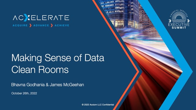 In dieser Aufzeichnung sprechen Bhavna Godhania von Acxiom und James McGeehan von Snowflake über unsere gemeinsame Clean-Room-Lösung, die einen sicheren Ort bietet, um Daten zu teilen und Geschäftserfolge zu steigern.