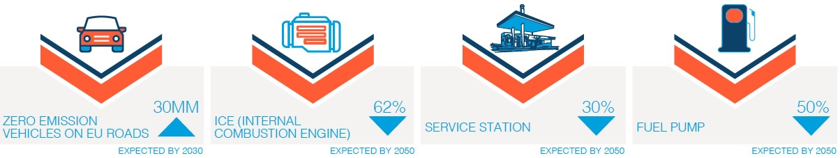 Der europäische Tankstellensektor befindet sich im Umbruch: In den letzten zehn Jahren ist die Zahl der Tankstellen um 15 % zurückgegangen, sodass es derzeit nur noch 100.000 Tankstellen gibt. Laut Prognosen ist bis zum Jahr 2050 ein weiterer Rückgang auf weniger als 70.000 Einheiten zu erwarten, begleitet von einer erheblichen Verringerung der insgesamt verkauften Kraftstoffmenge um 50%. Dieser Wandel wird durch das prognostizierte Ende der Ära der Verbrennungsmotoren (ICE) und den Übergang hin zu Elektrofahrzeugen (EV) und Hybridelektrofahrzeugen (HEV) vorangetrieben. Das erklärte Ziel sind 30 Millionen emissionsfreie Fahrzeuge auf EU-Straßen bis 2030. Der demografische Wandel und die Urbanisierung tragen ebenfalls zu dieser sich verändernden Landschaft bei. Hierbei befinden sich städtische Tankstellen wahrscheinlich in einer stärkeren Position als ländliche, da letztere am meisten gefährdet sind.