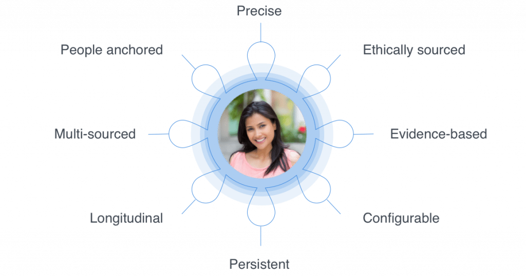 Wie entsteht mithilfe von Identity-Lösungen eine einheitliche Sicht auf den Kunden? Wenn alle Datenpunkte, Prozesse, angereicherten Daten, Verknüpfungen und der damit verbundene Verwaltungsaufwand berücksichtigt werden, verfügt eine Identity-Suite über folgende Attribute: